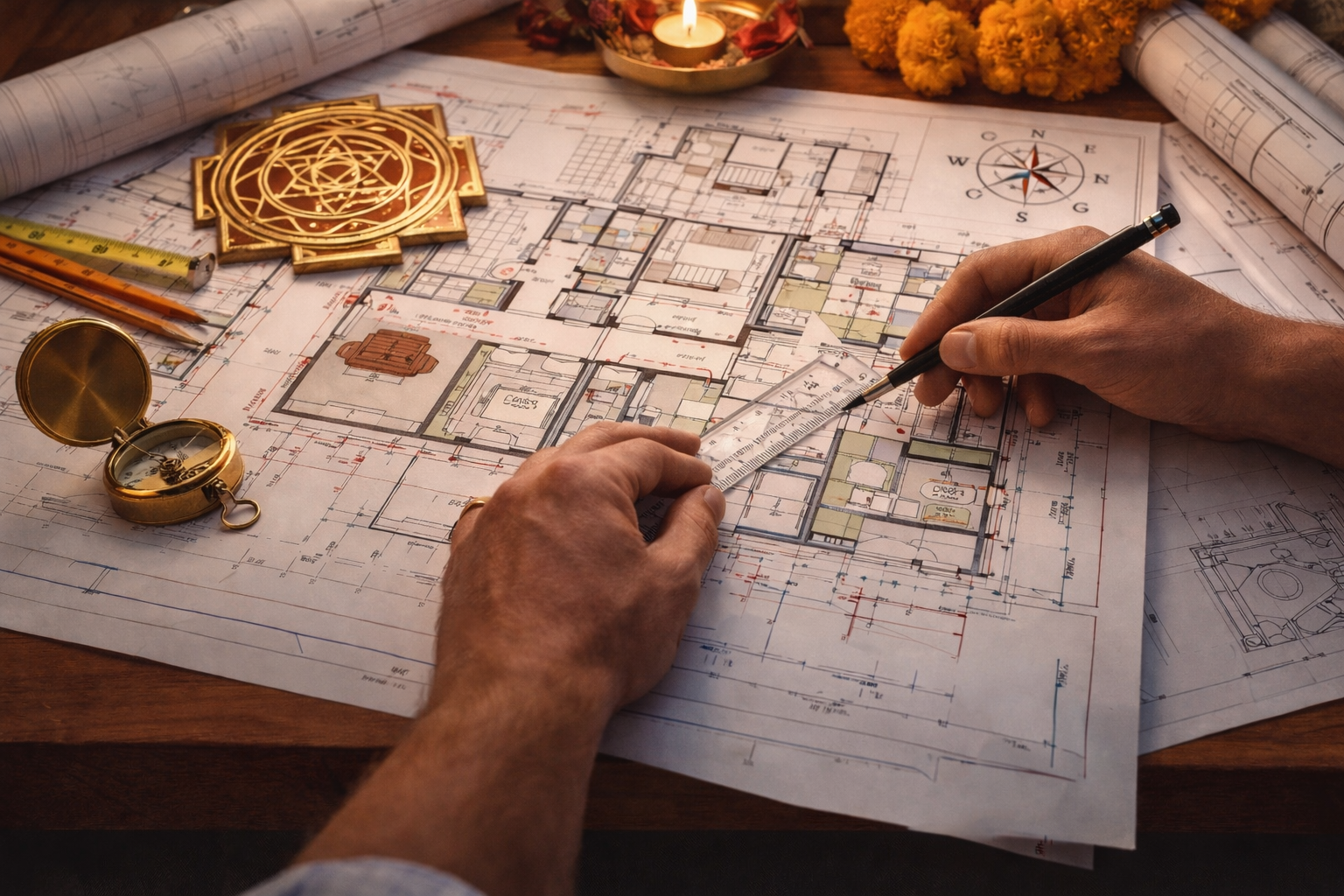 Detailed analysis of house plans to ensure proper Vastu alignment before construction.